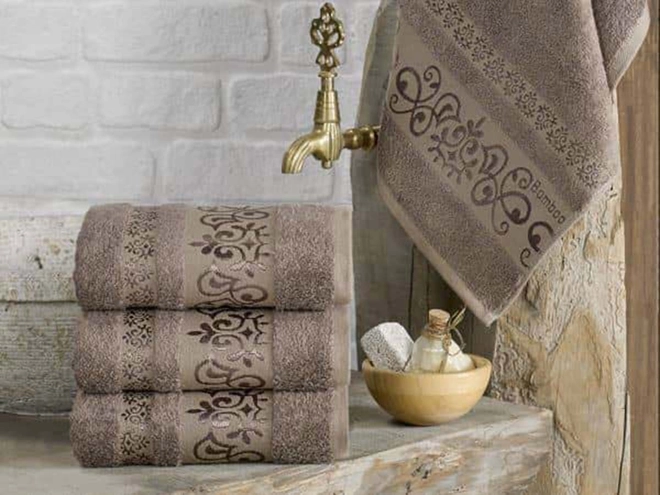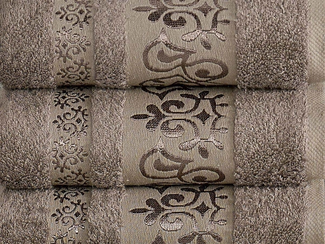 Doprajte svojej pokožke jemné froté osušky KAISA. Svetlo hnedé odtiene a dezén prúžkov tejto kolekcie pôsobí elegantne a zútulní tak interiér každej kúpeľne. Nadýchaný vzhľad, dobrá savosť aj dlhá životnosť bavlnených vlákien je to čo oceníte po každej voňavej kúpeli.