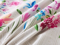 Svieži vzor pestrofarebných lúčnych kvetov nesú bavlnené obliečky NEVADA. Nežný tanec akvarelových farieb na jemnom vzorovanom podklade v bielej a svetlom odtieni béžovo - sivej, vpustí letnú uvoľnenú náladu do každého interiéru. Vaše paplóny oblečie hrejivá česaná 100% bavlna, ktorá má všetky náležitosti pre pokojný a nerušený spánok. Kvetované obliečky budú šperkom aj vo vašej posteli.