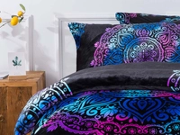 Hľadáte ideálnu posteľnú bielizeň na zimu? Potom je mikroplyš práve pre vás! Mikroplyšové obliečky a farebný motív pôsobivých mandál na čiernom podklade efektne ozdobí nejednu spálňu. Mandaly, ako symbol pokoja a rovnováhy, ktoré vás uvoľnia a pripravia k tomu pravému odpočinku. A čo viac mikroplyš ponúka? Materiál s jemným chĺpkom po vypraní rýchlo usychá, nežehlí sa a celková starostlivosť oň je veľmi jednoduchá. Jasné a stále farby nestratia na kráse ani po mnohých praniach. A nebojte sa, nevytvára žmolky a nepúšťa chlpy!