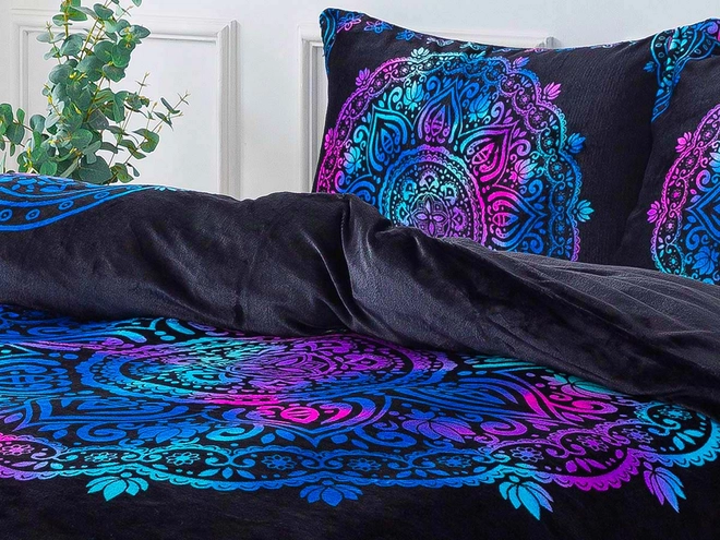 Hľadáte ideálnu posteľnú bielizeň na zimu? Potom je mikroplyš práve pre vás! Mikroplyšové obliečky a farebný motív pôsobivých mandál na čiernom podklade efektne ozdobí nejednu spálňu. Mandaly, ako symbol pokoja a rovnováhy, ktoré vás uvoľnia a pripravia k tomu pravému odpočinku. A čo viac mikroplyš ponúka? Materiál s jemným chĺpkom po vypraní rýchlo usychá, nežehlí sa a celková starostlivosť oň je veľmi jednoduchá. Jasné a stále farby nestratia na kráse ani po mnohých praniach. A nebojte sa, nevytvára žmolky a nepúšťa chlpy!