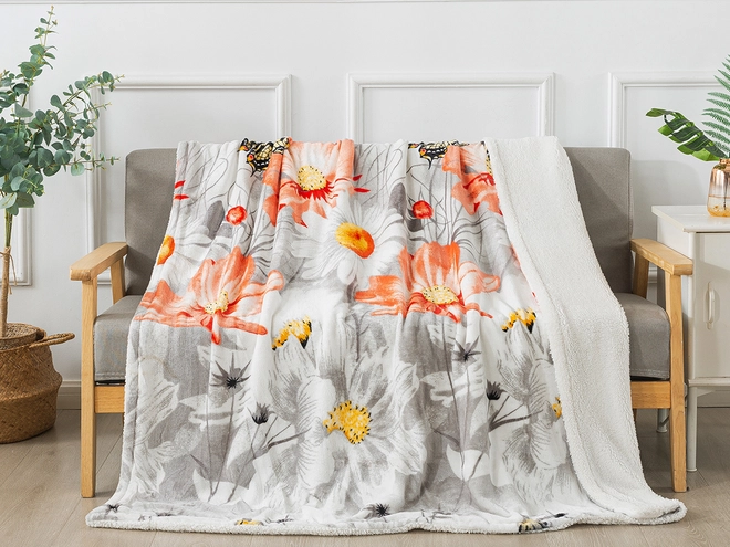 Deka mikroplyš s baránkom KARLA - oranžová/sivá 140x200cm