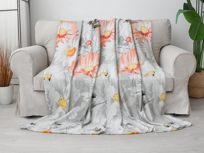 Mikroplyšová deka KARLA - oranžová/sivá 140x200 cm