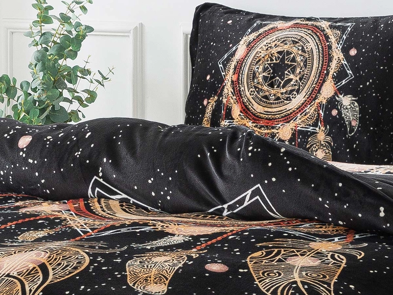 Hľadáte ideálnu posteľnú bielizeň na zimu s magickým vzorom? Ste tu správne! Tieto hebučké a nadýchané mikroplyšové obliečky s motívom pozitívnej energie LAPAČA SNOV na pozadí nočnej oblohy budú tou pravou voľbou pre každú spálňu. Mikroplyš je hrejivý materiál tvorený jemným vláknom s krátkymi chĺpkami a v posteli tak vytvára útulno a teplo. Užite si chvíle odpočinku v príjemných mikroplyšových obliečkach, ktoré sú nenáročné na údržbu.