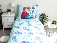 Malé obdivovateľky filmu Ľadové kráľovstvo jednoznačne milujú všetko, kde môžu vidieť tváre dvoch hlavných hrdiniek. Detské obliečky a Sestry Elsa a Anna, ktoré sa vydali na veľkolepú výpravu za záchranou kráľovstva Arendelle od večnej zimy ozdobia každú dievčenskú izbu. Svietiace detské obliečky dieťatko potešia aj po zhasnutí svetla, kedy sa objavia svietiace snehové vločky (viď tmavý obrázok). Určite oceníte aj materiál bavlny, precízne ušitie a farby, ktoré sú vhodné pre detskú pokožku.