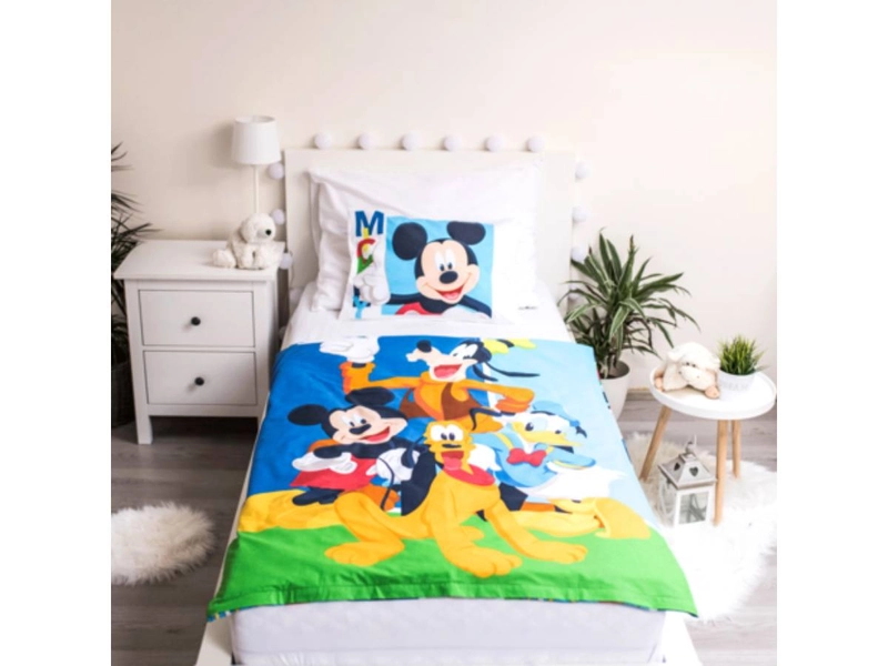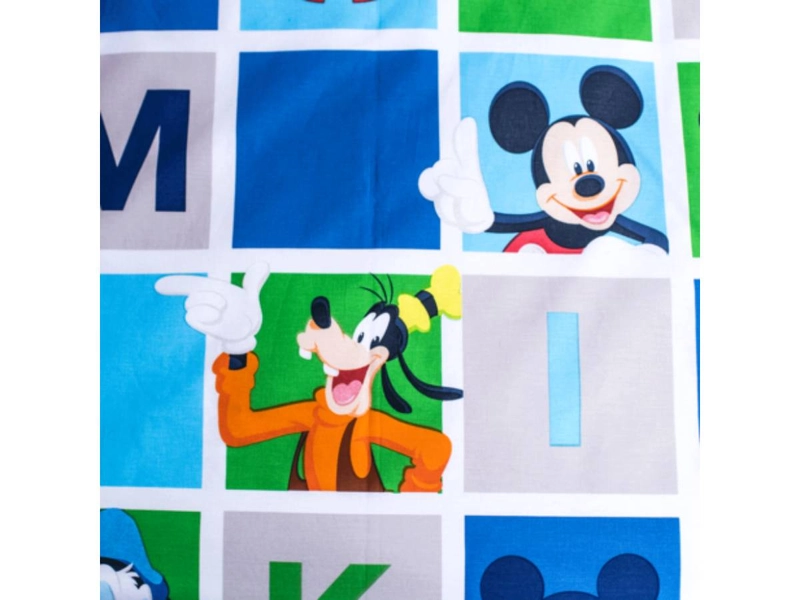 Veselé rozprávkové postavičky sú ideálnou voľbou do detskej postieľky. Obliečky Mickey Mouse a kombinácia v modrej, zelenej a žltej farbe prejasnia každý deň aj vášmu drobcovi. Dvojdielne obliečky pre deti tvorí obliečka na vankúš s myšiakom a obliečka na perinu, ktorá je zo spodnej strany so vzorom a praktické zapínanie na zips. Disney licenčné obliečky do postieľky sú zhotovené z jemnej 100% bavlny, ktorá dobre saje pot a je vhodná aj do horúcich letných dní.