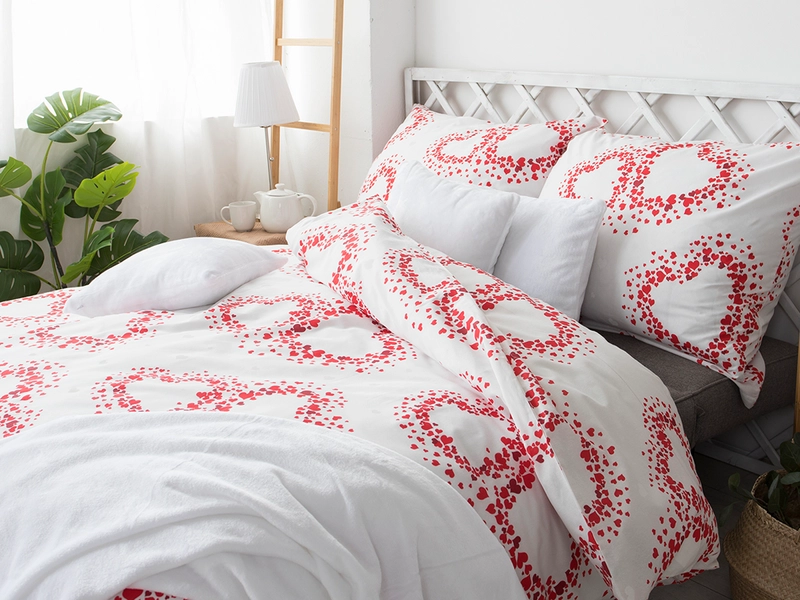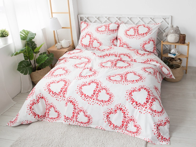 Červené srdiečka sú symbolom lásky a náklonnosti. Obliečky Heart Love zaručene upútajú pozornosť so záplavou drobných srdiečok, ktoré tvoria veľké srdcia. Bielo červená posteľná bielizeň prejasní každý deň nielen v spálni, ale ľúbivý dizajn na svetlom podklade poteší aj v dievčenskej izbe. Navyše je materiál príjemný na dotyk, odolný a vďaka svojej priedušnosti prináša komfortný a pokojný spánok. Romantické obliečky z bavlny sú vhodným darčekom od srdca, s ktorým to vyhráte.