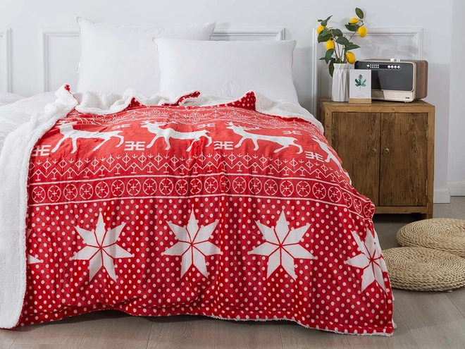 Mikroplyšová deka VIANOCE s baránkom - červená 140x200 cm