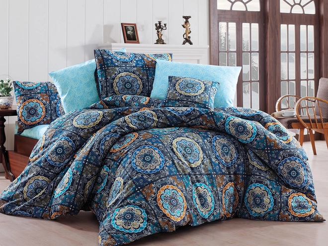 Ozdobte si spálňu s decentným florálnym vzorom odkvitajúcich púpav. Gradujúci svetlo modrý podklad prechádza do tmavšieho odtieňa modrej s nádychom do tyrkysu čo pôsobí na lôžku elegantne a harmonicky. Bavlnené obliečky LOOP príjemne prekvapia svojou jemnosťou a na dotyk hladkým povrchom. Materiál z bavlny Renforcé ponúka žiaduce vlastnosti, ako je mäkkosť, savosť a vzdušnosť čo prispeje ku kvalite spánku. Každá obliečka na vankúš je dizajnom unikátna a nesie na sebe inú časť vzoru.
