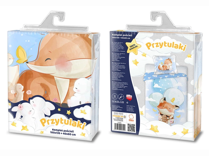 Obľúbené vzory mráčikov a zvieratiek aj jemná modrá farba zdvihnú náladu v každej detskej izbičke. Obliečky s liškou sa hodia jak pre dievčatko, tak aj pre chlapčeka. Neutrálne obliečky do postieľky sú zhotovené z príjemnej, savej a vzdušnej 100% bavlny. Detské obliečky s Liškou sú jemné k detskej pokožke a spĺňajú tak všetky náležitosti k spokojnému spánku.