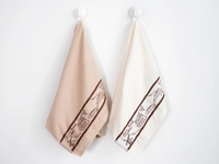 Vysoko savé froté utierky sú v domácnosti nepostrádateľným pomocníkom. Mäkká nadýchaná bavlna pohladí vaše ruky a spríjemní tak upratovanie kuchynskej linky aj jedálenského stola, krásne vysuší riad a nezanechá na ňom žiadne vlákna. Kuchynské utierky zdobí ľúbivý dekór hnedej výšivky PANARE v spodnej časti, ktorý efektne dopĺňa prerušované froté tvoriace drobný vzor šachovnice z oboch strán.