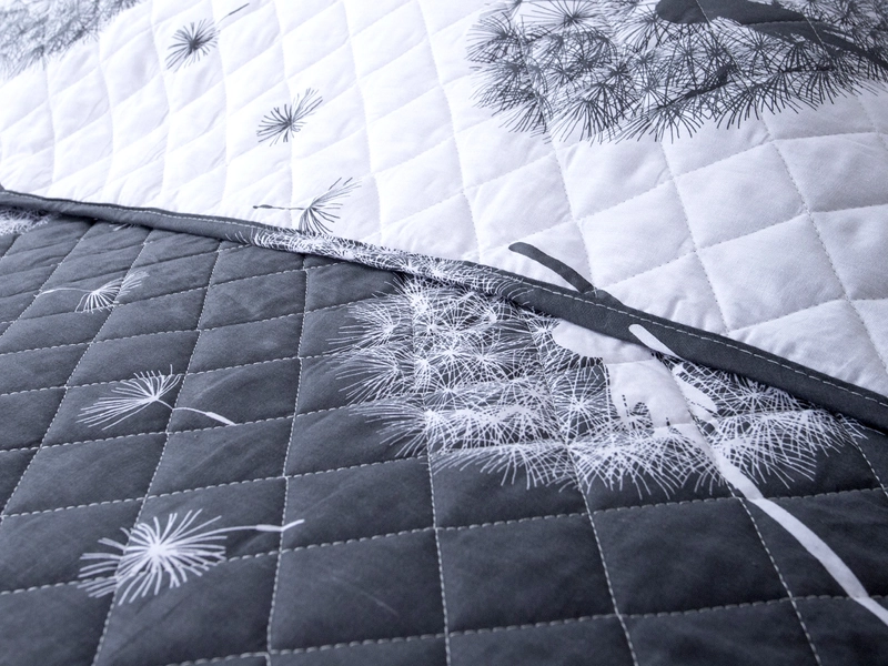 Decentný motív odkvitnutých púpav a poletujúceho páperia doladí vašu spálňu k dokonalosti. Prikrývky na posteľ poskytnú nielen estetický doplnok, ale aj praktiké vlastnosti. Prikrývka na posteľ PÚPAVA je zhotovená v dvoch farbách, obdobne ako obliečky v DUO prevedení a môžete ju meniť podľa nálady či ročného obdobia. Na leto sa hodí biely podklad so sivou potlačou a v zimných mesiacoch tmavosivý základ s bielym vzorom.