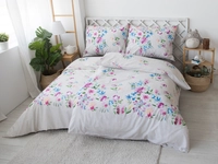 Svieži vzor pestrofarebných lúčnych kvetov nesú bavlnené obliečky NEVADA. Nežný tanec akvarelových farieb na jemnom vzorovanom podklade v bielej a svetlom odtieni sivej, vpustí letnú uvoľnenú náladu do každého interiéru. Jemná 100% bavlna renforcé má všetky náležitosti pre pokojný a nerušený spánok.