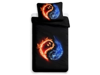 Oblečte svoju posteľ do nádherných živých vzorov. Oheň a voda ako harmonický celok zdobí 3D povlečení JING JANG. Výrazný kontrast ohnivej oranžovej a ľadovo modrej na čiernom pozadí vynikne predovšetkým v neutrálnych spálňach. Jemný materiál z mikrovlákna je mimoriadne odolný, dobre drží farby, rýchlo schne a nemusí sa žehliť.