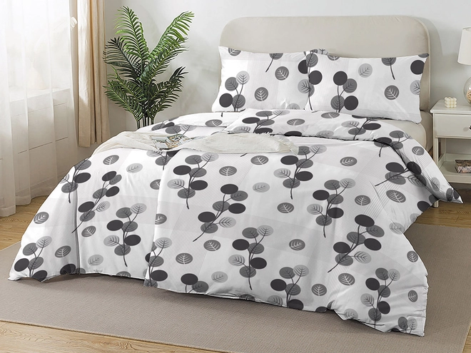 Bavlnené obliečky PÚPAVY DUO na dve postele - sivé/biele