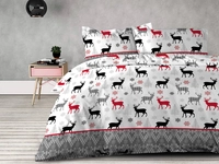 Francúzske obliečky a severský vzor LYANA osvieži každú spálňu. V spodnej časti obliečky nájdete efektnú imitáciu pletenej vlny, ktorá prechádza do bieleho podkladu s príhodným motívom jeleňov, vločiek a stromčekov. Štýlovo ladené farby sivej, červenej a čiernej na bielom podklade prispejú k pohodovej atmosfére interiéru počas zimných dní aj v období sviatkov. Hladká 100% bavlna zaručí hebkosť a vzdušnosť materiálu.