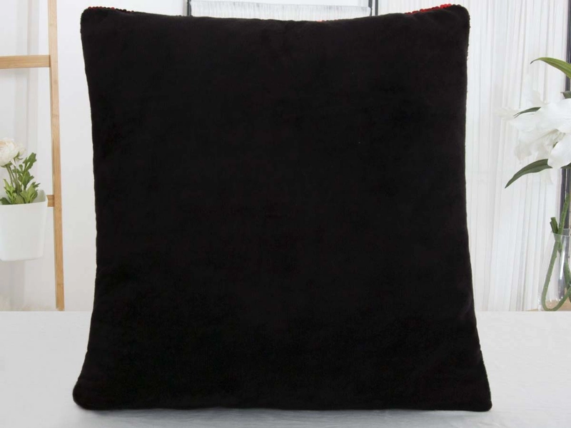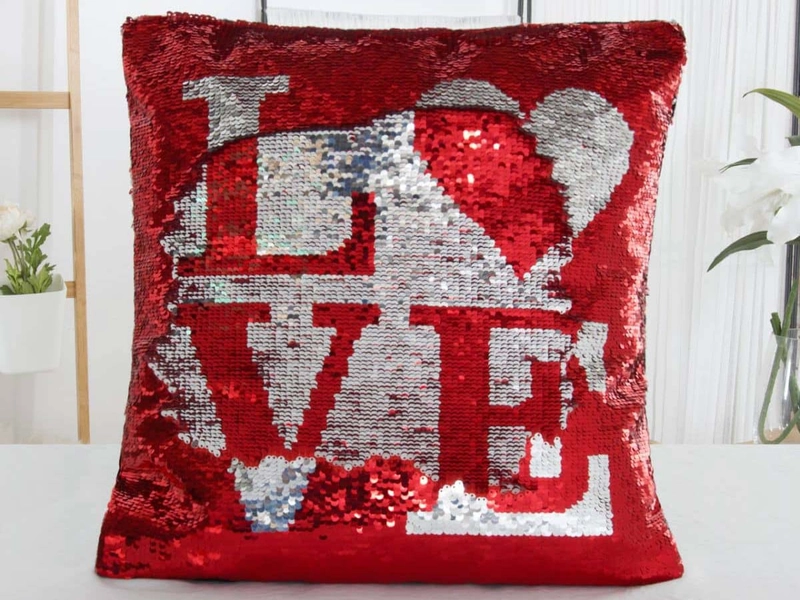 Krásne prejasní každý všedný deň a chytí za srdiečko. Díky všitým flitrom máte rovno dva meniace sa dizajny. Vrchnú stranu zdobí strieborný nápis LOVE na červenom podklade, ten zmeníte ľahko pohybom ruky na červený nápis so strieborným pozadím. Zadná strana obliečky je jednofarebná z čierneho mikroplyšu s krátkymi chĺpkami jemná ako zamat.