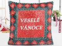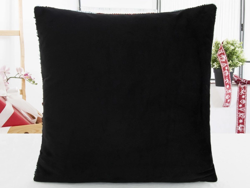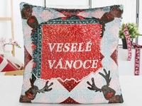 Vďaka rafinovane našitým flitrom na ňom nájdete dva meniace sa designy. Na prednej straně sa usmeje veselý sob na tyrkysovom podklade a ľahkým pohybom ruky po povrchu vás poteší snehuliak. Zadná strana obliečky na vankúš je jednofarebná z čierneho mikroplyšu s krátkymi chĺpkami jemná ako zamat.