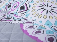 Harmonický motív mandál plus kombinácia farieb v odtieni fialovej a modrej na sivom podklade rozjasní každú spálňu. Prehoz v praktickom prevedení 100% bavlny s výplňou dutého vlákna nájde využitie aj ako ľahká prikrývka.