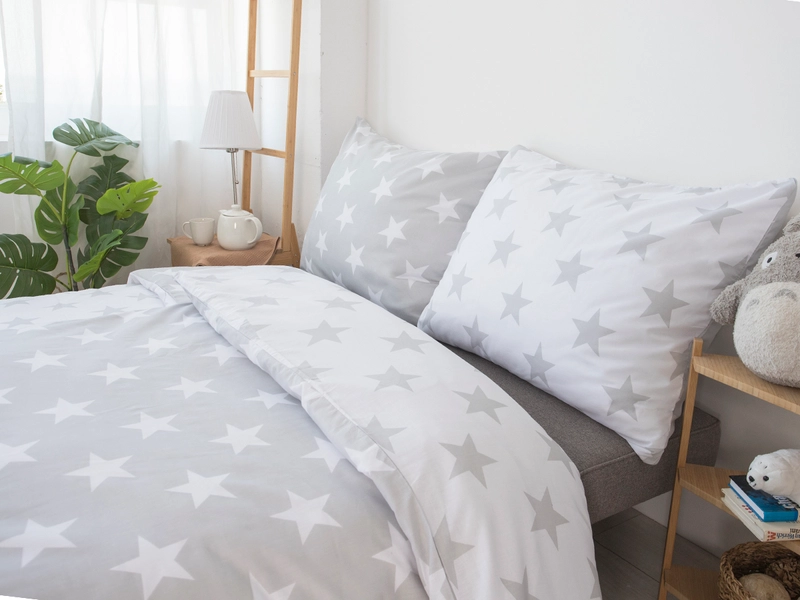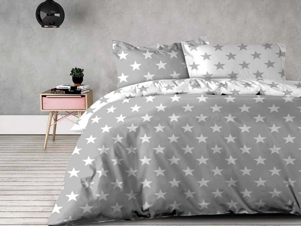 Netradičné hviezdičkové obliečky LÝDIA z jemnej 100% bavlny sú vhodné do spální a s DUO farebným vyhotovením vám dajú priestor zvoliť si biely či sivý podklad podľa nálady. Na dotyk príjemný materiál je priedušný, vyrovnáva teplotné rozdiely a dobre absorbuje vlhkosť. Francúzske obliečky na veľkú prikrývku v celku na dve postele vám umožnia sa poriadne zababušiť.