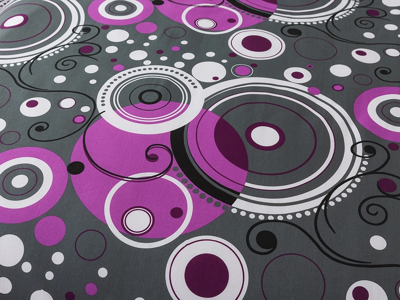 Svieže a moderné sú bavlnené obliečky ŠÁRKA. Kruhy, krúžky a kružnice! Tento vzor a kombinácia farieb fialovej, slivkovej, bielej a čiernej rozjasní každú spálňu a vnesie do nej príjemnú energiu. 100% bavlna zaručí vzdušnosť, savosť a celoročné využite. Francúzsky rozmer obliečky vcelku na 2 postele je ideálny pre páry alebo pre všetkých, ktorí sa radi zababušia pod perinu 200x220 cm.