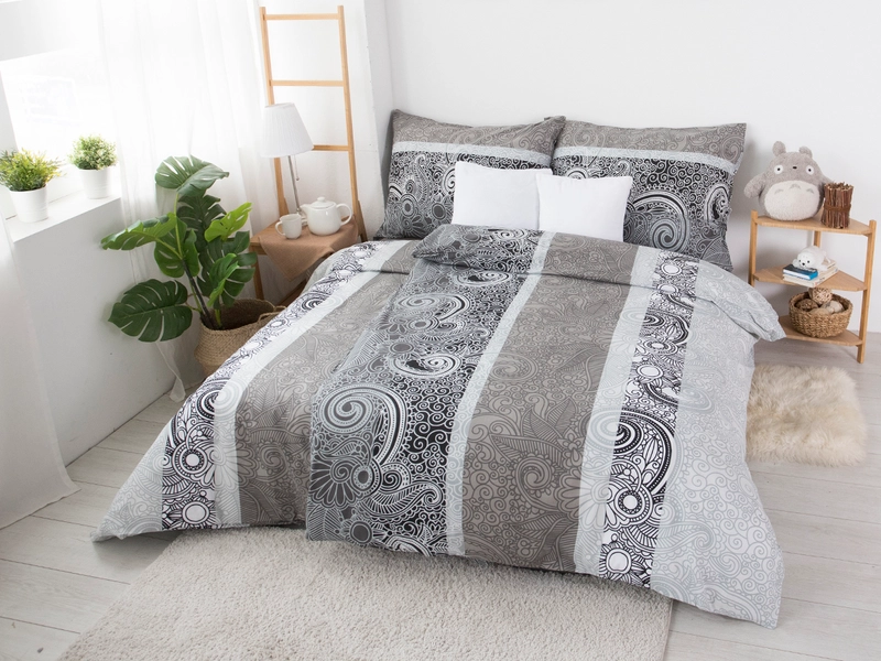 Bavlnené obliečky Ornela s výrazným ornamentálnym vzorom potešia milovníkov neutrálnych farieb. Striedanie svetlých a tmavých odtieňov, ako sú sivá, čierna, odtiene kávovej na svetlom podklade sa stanú dominantou v každej spálni. Vďaka materiálu zo 100% bavlny sa tu môžete spoľahnúť na vzdušnosť aj odolnosť, voči opotrebeniu a na dotyk príjemný povrch. Využite výhodný set 2+2 na dve klasické lôžka.