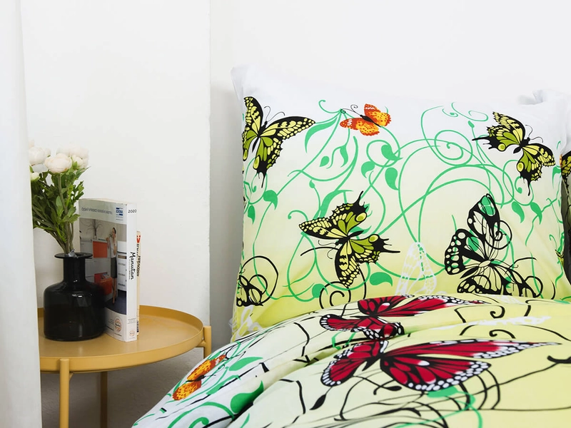Ľahkosť a krása motýlich krídiel zdobí tieto romantické obliečky KAROLÍNA, ktoré budú šperkom v každej spálni. Zelený podklad s pozvoľným prechodom do bielej kontrastuje s výraznými krídlami motýľov sa hodí aj pre jarné obliečky, ktoré tvoria svieží harmonický celok. Bavlnené obliečky prispejú k navodeniu pokojnej nálady spolu so vzdušným materiálom 100% bavlny, ktorý je savý a príjemný na dotyk je ideálnou kombináciou k nerušenému spánku. Výhodný set 2+2 na dve klasické lôžka.