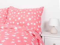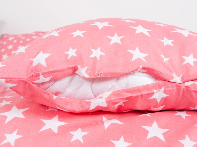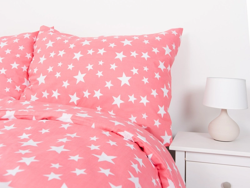 Bavlnené obliečky s jemným dizajnom hviezdičiek neprekvapia iba hladkým povrchom, ale aj praktickými vlastnosťami. Bielo ružová posteľná bielizeň zo 100% bavlny ponúka vlastnosti, ako sú priedušnosť, savosť a odolnosť voči praniu a sušeniu. Predĺžená dĺžka obliečky na paplón je tou pravou voľbou pre vyššie postavy, no i pre jedincov, ktorí sa radi zababušia od hlavy po päty.