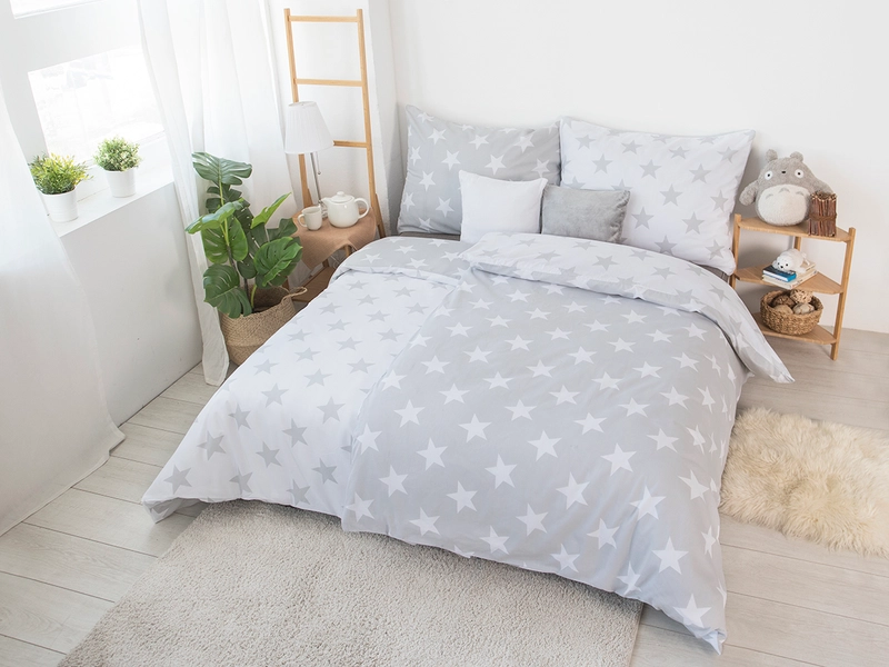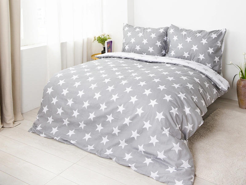 Netradičné hviezdičkové obliečky LÝDIA z jemnej 100% bavlny vo farbe sivej a bielej sú vhodné do spálni i do detských izbičiek. Duo prevedenie bieleho a sivého základu si môžete každý deň meniť podľa nálady. Na dotyk príjemný materiál, ktorý je priedušný, vyrovnáva teplotné rozdiely a dobre absorbuje vlhkosť. Predĺžená dĺžka obliečky na paplón je tou pravou voľbou pre vyššie postavy.