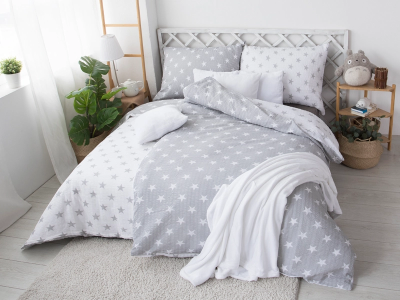 Krepové obliečky s motívom hviezdičiek LÝDIA je vyrobené z kvalitnej 100% bavlny a hodia sa do spálni i detských izbičiek. Na dotyk príjemný materiál je priedušný, vyrovnáva teplotné rozdiely a dobre absorbuje vlhkosť. Set obliečok skvele padne na naše prikrývky 140x200 a vankúše 70x90.