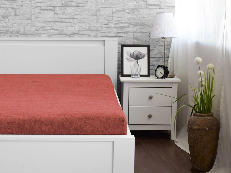 K pekným obliečkam bezpochyby patria vkusne zladené froté plachty. Tvorí ich hrejivá, mäkká a na dotyk príjemná slučková tkanina, ktorá sa skladá z 80% bavlny a 20% polyesteru. Posteľná plachta a tmavo oranžová farba krásne doladí interiér aj zvolené obliečky podľa farby. Ľahko si ich obľúbite pre ich nenáročnú údržbu bez žehlenia. Prestieradlo je zakončené všitou gumou, vďaka ktorej sa ľahko upevní na matrac a dobre na ňom drží.