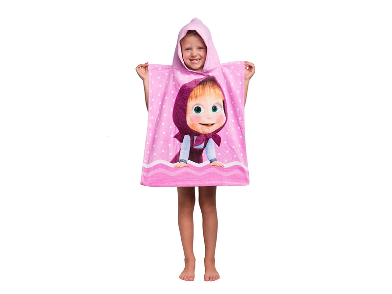 Postavičky z obľúbeného animovaného seriálu MÁŠA A MEDVEĎ na ružovom podklade zdobia jemné froté pončo, ktoré poteší nejedno detské srdiečko. Deti milujú kúpanie, vodu a bazén, ale aj pestré farby a príjemné teplo a pohodlie. Doprajte im detské pončo s kapucňou vyrobené z príjemného froté materiálu zo 100% bavlny, ktorá dobre saje a je vhodná pre citlivú detskú pokožku.