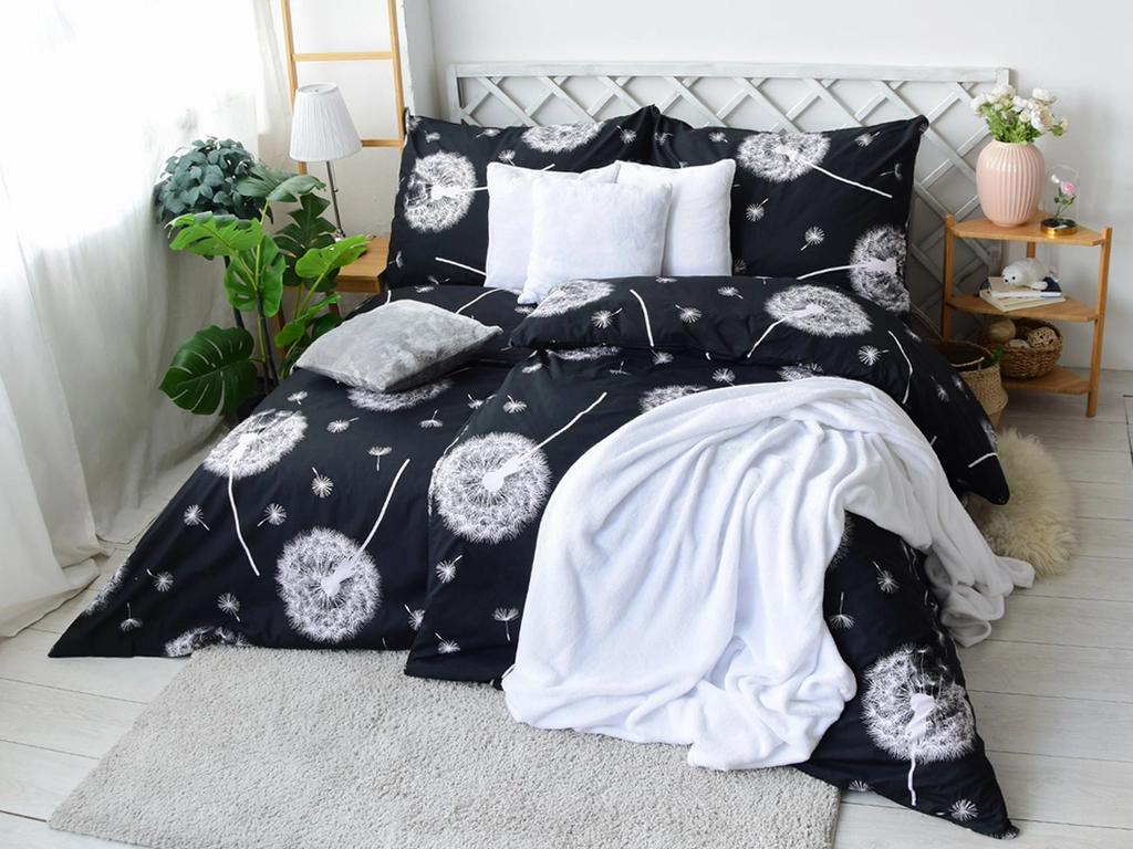 Decentný motív odkvitnutých púpav a poletujúceho páperia doladí vašu spálňu k dokonalosti. Predĺžené obliečky sú vkusne ladené s čiernym základom a bielym vzorom púpavy. Neutrálne farby podľa nálady doladíte farebnými obliečkami na vankúše. Vďaka hebkému a priedušnému materiálu zo 100% bavlny spĺňa všetky predpoklady k dobrému spánku. Predĺžená dĺžka obliečky sa hodí na paplón 140x220 a je tou pravou voľbou pre vyššie postavy.