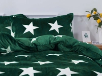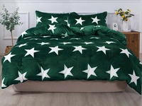 Hľadáte ideálnu posteľnú bielizeň na zimu s pútavým vzorom hviezdičiek? Potom ste tu na správnom mieste! Mikroplyš je hrejivý materiál tvorený jemným mikrovláknom s krátkymi chĺpkami, ktoré v posteli vytvárajú útulno a teplo. Zamatovo zelený základ nechá krásne vyniknúť vzoru hviezd v bielej farbe a vdýchne tak spálni sviežu a pozitívnu energiu. Užite si chvíle odpočinku v príjemných mikroplyšových obliečkach. Sú nenáročné na údržbu, rýchlo schnú, zostávajú krásne nadýchané a stálofarebné. Spánok do ružova pod francúzskou prikrývkou v celku na dve lôžka si zaslúžite aj vy!