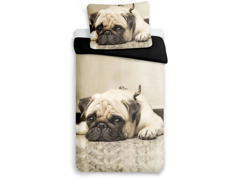 Obliečky pes ponúkajú obľúbený motív pre všetkých milovníkov týchto štvornohých zvierat. 3D obliečky a béžové odtiene sú príjemným doplnkom do detskej izbičky, ale aj pre milovníkov tohto roztomilého plemena. Spodná strana prikrývky je jednofarebná, obliečka na vankúš má obrázok z oboch strán. Materiál z mikrovlákna je mimoriadne odolný, dobre drží farby, rýchlo schne a nemusí sa žehliť.