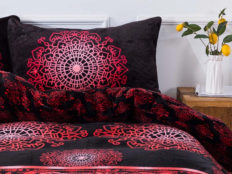 Hľadáte ideálnu posteľnú bielizeň na zimu s pútavým vzorom? Ste tu správne! Efektný motív KENDAL v harmonickej kombinácii čiernej a odtieňov červenej farby sa stane dominantou v každej spálni. Tieto obliečky ponúknu nadýchaný mikroplyš, ktorý je príjemne hrejivý, tvorený jemným mikrovláknom s krátkymi chĺpkami a v posteli tak vytvára útulne a teplo. Užite si chvíle odpočinku v mikroplyšových obliečkach a ušetrite svoj čas vďaka nenáročnej údržbe. Noc strávenú pod spoločnou francúzskou prikrývkou v celku na dve postele vám spríjemnia obliečky mikroplyš 200x220.