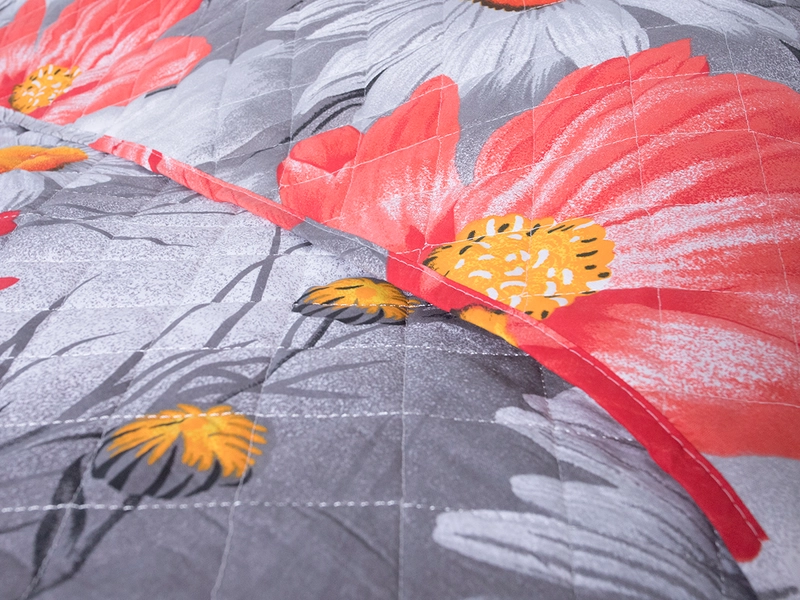 Harmonický motív lúčnych kvetov plus kombinácia teplých tónov v sýto oranžovej a žltej farbe na sivom a bielom podklade rozjasní každú spálňu a navyše sa dá využiť aj ako ľahká jemná prikrývka. V praktickom prevedení 100% bavlny s výplňou dutého vlákna nájde využitie aj ako ľahká prikrývka.