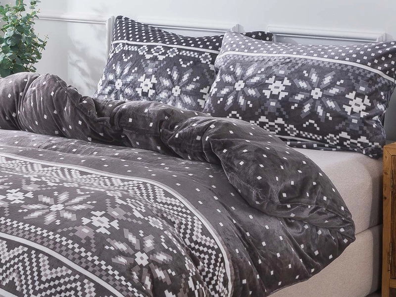 Hebučké mikroplyšové obliečky TORM so vzorom bielych zimných prvkov na zamatovo sivomom podklade si vás budú hýčkať hlavne v zimnom období. Mikroplyš je hrejivý materiál tvorený jemným mikrovláknom s krátkymi chĺpkami, ktoré majú výnimočnú schopnosť vytvárať v manželskej posteli útulne a teplo. Oceníte tiež nenáročnú údržbu, kedy tieto mikroplyšové obliečky rýchlo schnú a nemusia sa žehliť a zachovajú si krásne farby i nadýchaný vzhľad. Spánok do ružova pod francúzskou prikrývkou v celku na dve lôžka si zaslúžite aj vy!