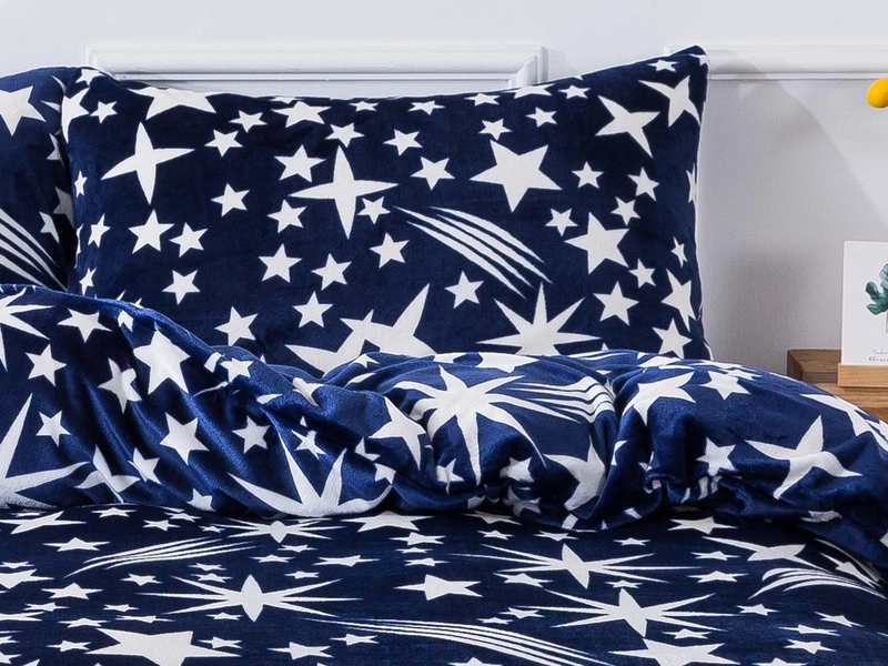Modré plyšové obliečky a hviezdy pre spánok v hrejivom objatí nočnej oblohy