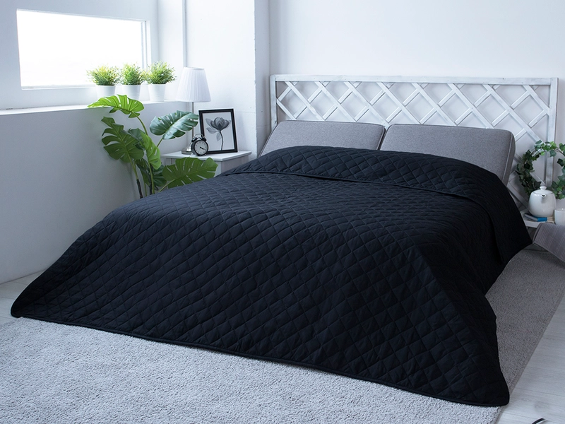Čierny prehoz pre modernú spálňu a ochranu lôžkovín