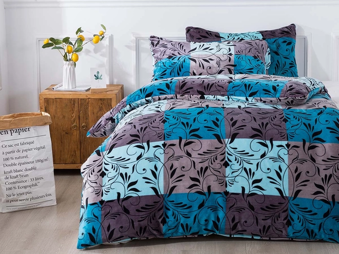 Váš sen sa stane skutočnosťou s mikroplyšovými obliečkami ideálnymi pre chladné zimné dni. Efektný sivý podklad zdobia farby tyrkysu, bielej a červenej vo vzore mandál KIM. Obliečky tak vdýchnu spálni či izbičke príjemnú a sviežu energiu. Mikroplyš je tvorenýz jemných priadzí mikrovlákna s krátkymi chĺpkami, ktoré navodia útulne a teplo až ku končekom prstov na nohách, čo vás uvoľní a ukolíše k hlbokému spánku. Zamilujete si aj vlastnosti materiálu, ktoré rýchlo schnú, nežmolkuje, nepotrebuje žehlenie, pretože sa nekrčí a zostáva nadýchaný. Farby sú stále a aj pri častom vypraní ostanú ako nové.