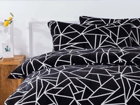 Mikroplyšové obliečky MATYLDA sú ideálnou posteľnou bielizňou nielen na zimu. Kombinácia vo farbe čiernej a bieleho geometrického vzoru ponúka nevšedný dizajn. Tmavý zamatový vzhľad vynikne najmä vo svetlej spálni či izbičke a s prehľadom sa stane dominantou miestnosti. V objatí hrejivého mikroplyšu si chvíle oddychu doslova užijete. Základom je jemné mikrovlákno s krátkymi chĺpkami, ktoré má výnimočnú schopnosť vytvárať v posteli útulne a teplo. Nezanedbateľné sú aj vlastnosti obliečky, ako stálofarebnosť, odolnosť a krásne nadýchaný vzhľad aj pri častom praní.