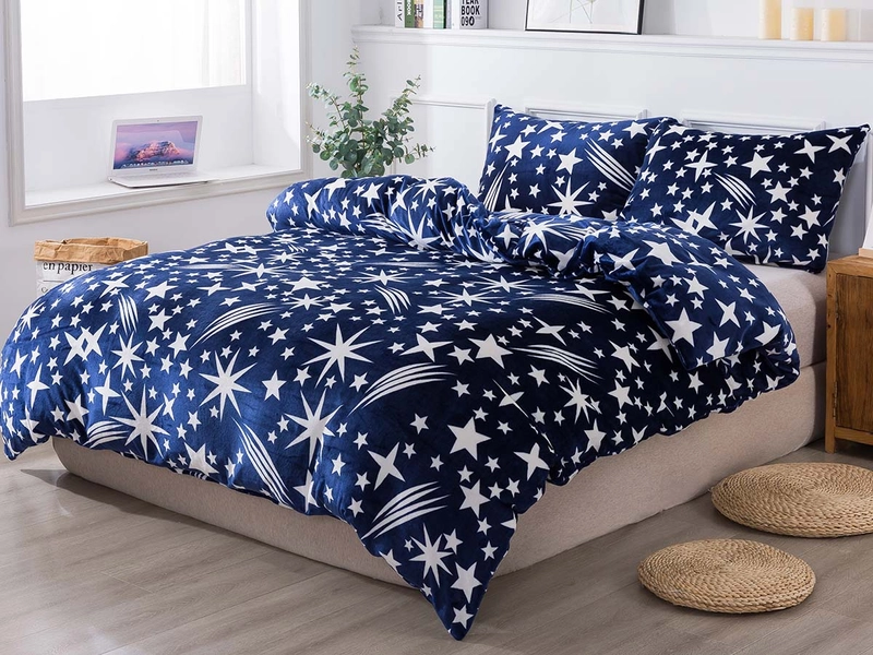 Modré mikroplyšové obliečky 200x220 pre hebké a hrejivé objatie plné hviezd