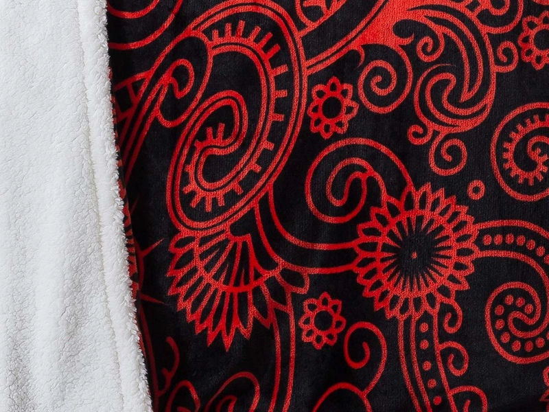 Ten správny impulz do interiéru bez pochyby prináša vzor RUSLANA s podkladom v čiernej, ktoré zbobí florálne motívy v ohnivo červenej. Zahreje, pohladí a spríjemní každú chvíľu odpočinku najmä v zimnom období. Poteší nielen vás, ale je vhodným darčekom pre rodinu, priateľov či večných uzimencov. Deku možno tiež obliecť a využiť ako prikrývku na spanie. Je vyrobená z mimoriadne hebkého materiálu, ktorý je ľahučký, skladný a pritom krásne hreje.