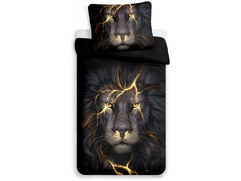 Lev je kráľom zvierat. Jeho sila, autorita a nezvratná dominancie na tmavom podklade je krásne spojená s efektným prevedením žeravé lávy ako symbolu životnej energie. 3D obliečky z mikrosaténu sa pýši niekoľkými kladnými vlastnosťami, vlákna sú extrémne jemné, príjemná na dotyk a rýchlo schnú. Nepatrne lesklý povrch dopĺňajú farby, ktoré dobre odolávajú praniu.