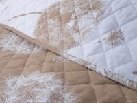 Prikrývka na posteľ je zhotovená v DUO prevedení s motívom PÚPAVY a môžete ju meniť podľa nálady či ročného obdobia. Na leto sa hodí biely podklad s hnedou potlačou a v zimných mesiacoch hnedý základ s bielym vzorom. Kombinácia farieb teplého tónu hnedej a vzdušnej bielej pôsobia harmonicky na manželskej posteli a navyše sa prehoz dá využiť aj ako ľahká prikrývka. Ozdobná, no i funkčná prikrývka s nenáročnou údržbou sa vám bude zaiste hodiť.