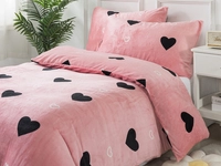 Mikroplyšové obliečky si vás získajú hrejivým pohladením už na prvý dotyk. Obliečky LOVE povedia za vás "milujem ťa". Romantický motív čiernych a jemných bielych srdiečok na ružovom podklade príjemne ozdobia nejednu spálňu. Oddajte sa pokojnému spánku v hebučkom objatí mikroplyšu, v ktorom si chvíle oddychu doslova užijete. Materiál je extrémne jemný tvorený česaným mikrovláknom s krátkymi chĺpkami, ktorý si zamilujete aj vďaka vynikajúcej stálofarebnosti, odolnosti voči praniu a nenáročnej údržbe bez žehlenia. Spoločná francúzska prikrývka v celku na dve postele je vhodná pre páry, alebo jedincov, ktorý sa radi zababušia.