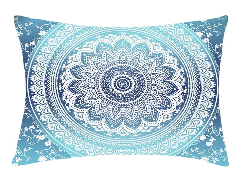 Nádherný motív Mandaly na tieňovanom modrom až tyrkysovom podklade si doprajte v podobe hebkej 3D obliečky na vankúš. Mikrovlákno sa pýši niekoľkými kladnými vlastnosťami, vďaka ktorým ho stojí za to vyskúšať. Jeho vlákna sú extrémne jemné, príjemné na dotyk a rýchlo schnú. Nepatrne lesklý povrch dopĺňajú dobré absorpčné vlastnosti a farby, ktoré odolávajú praniu. Niekedy pre príjemnů zmenu postačia aj samostatné obliečky na vankúše.