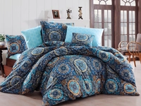 Honosný motív ASHLEY tvoria symetricky usporiadané prepracované vzory mandál, ktoré skladbou pripomínajú patchwork. Bavlnené obliečky sú na podklade tmavo modré a to dáva krásne vyniknúť dominantnej tyrkysovej a horčicovej farbe. Tento osobitý štýl sa hodí do svetlých, prírodne ladených i rustikálnych spální. Každý váš odpočinok vylepší 100% bavlna v prevedení Renforcé čo ponúka príjemne hladký povrch, savosť a vysokú odolnosť materiálu aj farieb. Francúzske obliečky sú vhodné pre páry, no perina v celku na dve postele poteší aj jednotlivcov, ktorí sa radi zababušia pod veľký paplón.