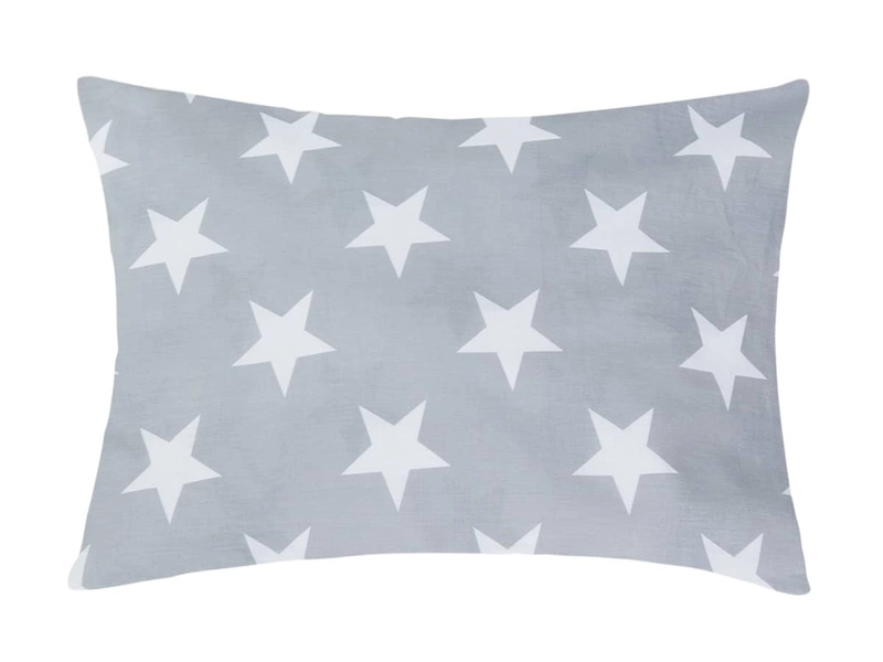 Netradičná hviezdičková obliečka na vankúš z kvalitnej 100% bavlny je vhodná do spální i detských izbičiek. Na dotyk príjemný materiál je priedušný, vyrovnáva teplotné rozdiely a dobre absorbuje vlhkosť. DUO design má z jednej strany biely a zo strany druhej sivý podklad. Stačí len otočiť vankúš a zvoliť si farbu podľa nálady.