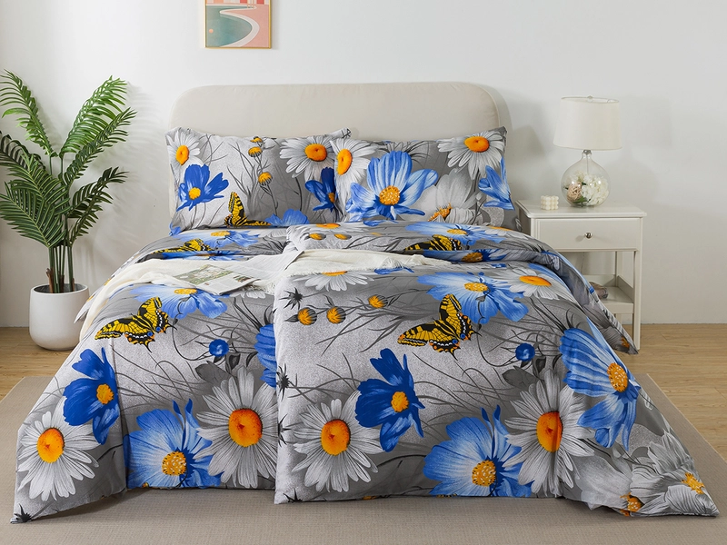 Obľúbená kombinácia modrej farby a sivého odtieňa dáva priestor vzniknúť mnohým zaujímavým dizajnom. Jedným z nich sa pýšia flanelové obliečky KARLA s motívom veľkých lúčnych kvetov efektne doladia každú spálňu. Oceníte aj na dotyk hebký materiál, ktorý je vzdušný, hrejivý a dobre absorbuje vlhkosť.